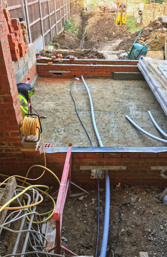 Professional connection of new properties to the electricity network using underground service cables from the nearest network pillar or pit, including trenching and terminations.